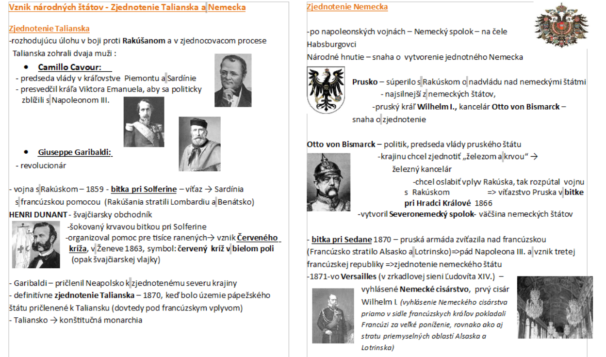 Vznik národných štátov - Zjednotenie Talianska a Nemecka - forma na zapamätanie
