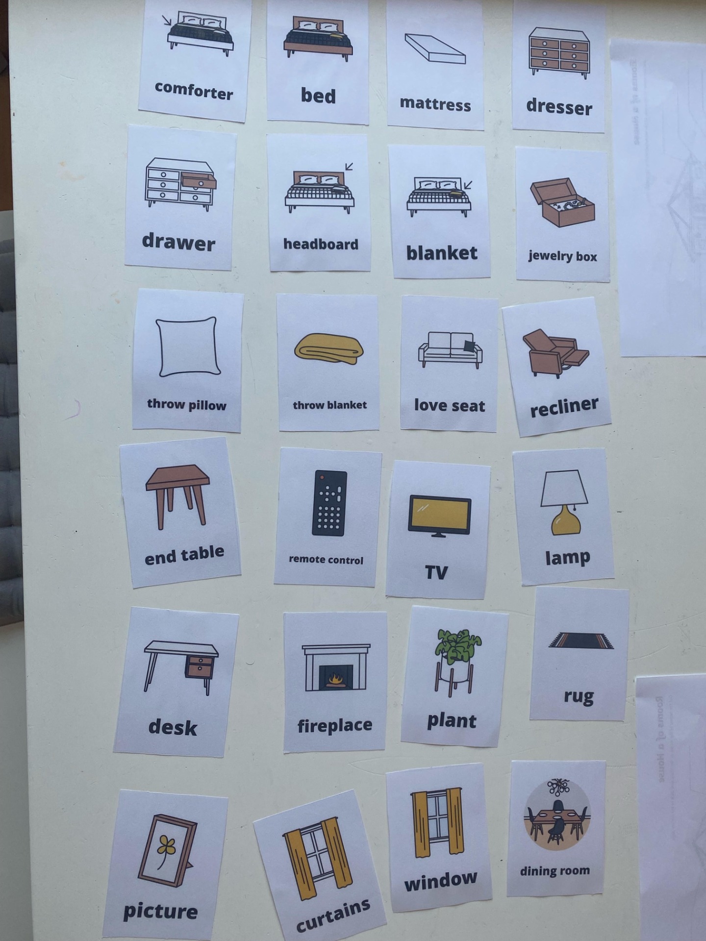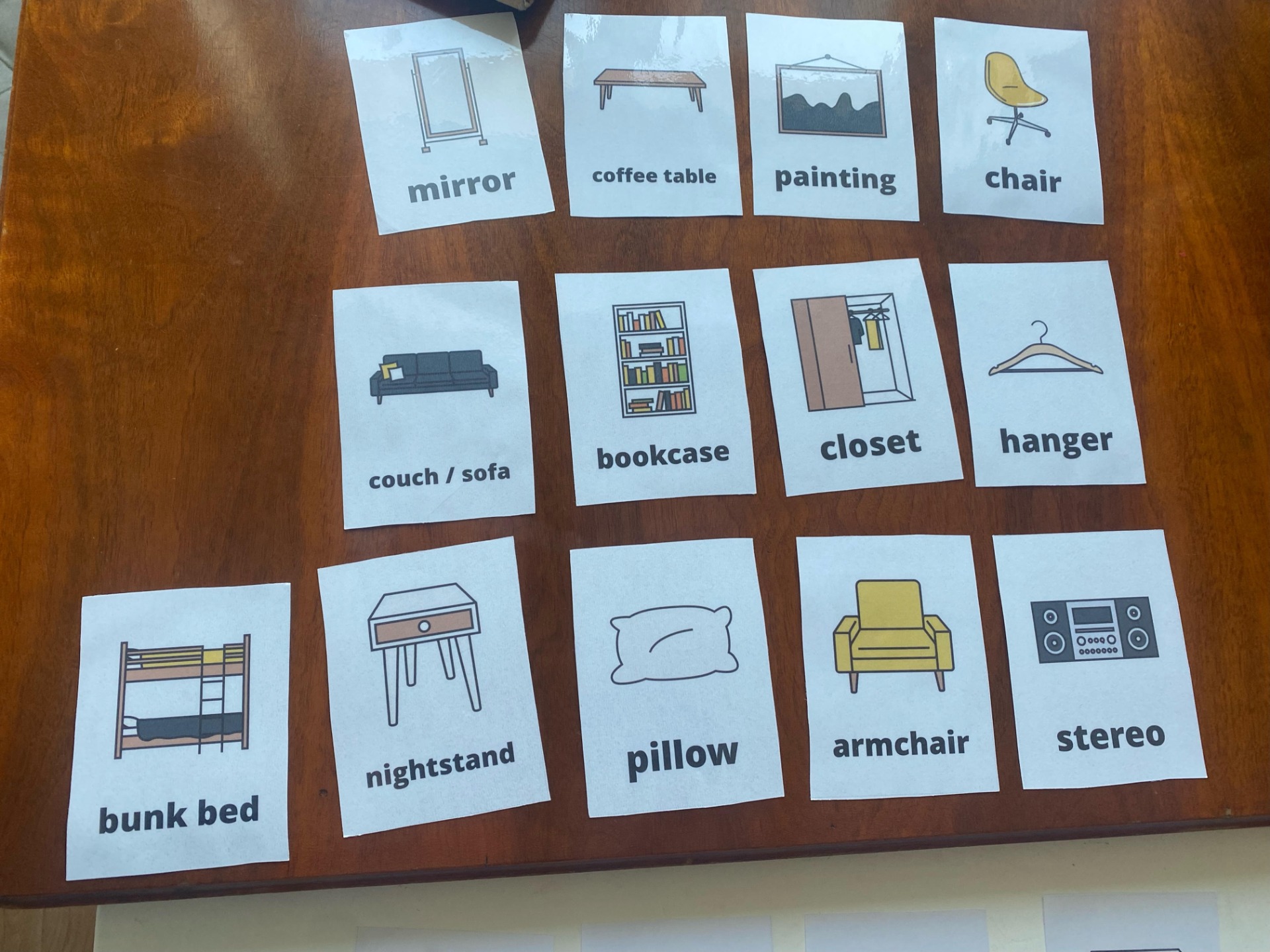 2. a 3. skupina (stredne a menej pokročilí) pokračovali v téme My house. Dnes sa učili nábytok a časti izby po anglicky. Žiaci sa oboznámili s novými slovíčkami (napr. bed, chair, table, mirror, closet ...) a tvorili s nimi jednoduché vety.