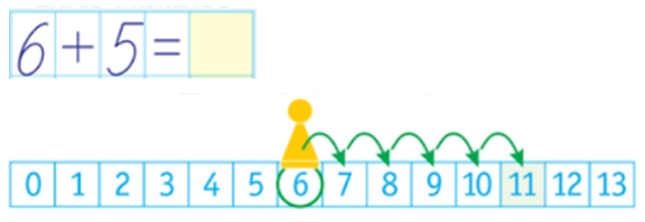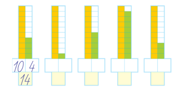 - sčítať a odčítať prirodzené čísla v číselnom obore do 20 s prechodom cez základ 10 na úrovni manipulácie (s použitím počítadla, kamienkou, krokovacieho pásu a i.)