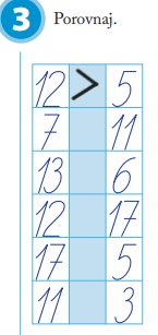 - porovnať dve čísla a výsledok porovnania zapísať pomocou relačných znakov >,<, =