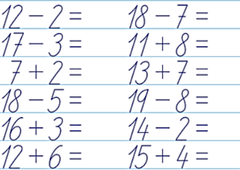 - sčítať a odčítať prirodzené čísla v číselnom obore do 20 bez prechodu cez základ 10