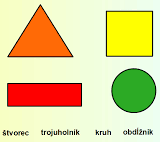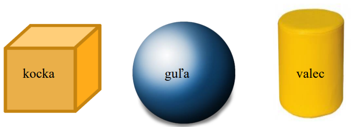 - rozlíšiť, pomenovať, nakresliť rovinné geometrické útvary (trojuholník, štvorec, obdĺžnik, kruh), rozlíšiť a pomenovať priestorové geometrické útvary (kocka, valec, guľa)