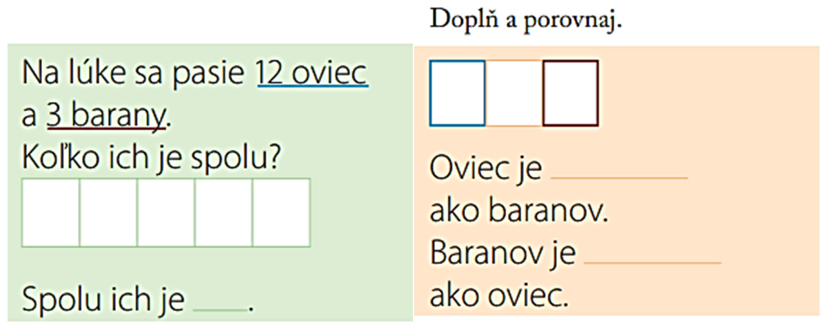- vyriešiť jednoduché slovné úlohy na sčítanie a odčítanie v číselnom obore do 20 bez prechodu cez základ 10, vyriešiť slovné úlohy na porovnávanie