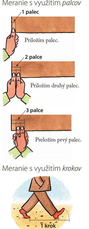 - odmerať dĺžku (výšku, šírku, ...) daného predmetu pomocou neštandardných jednotiek dĺžky (neštandardné jednotky dĺžky – napr. stopa, palec, dlaň, lakeť, iný predmet – napr. spinka)