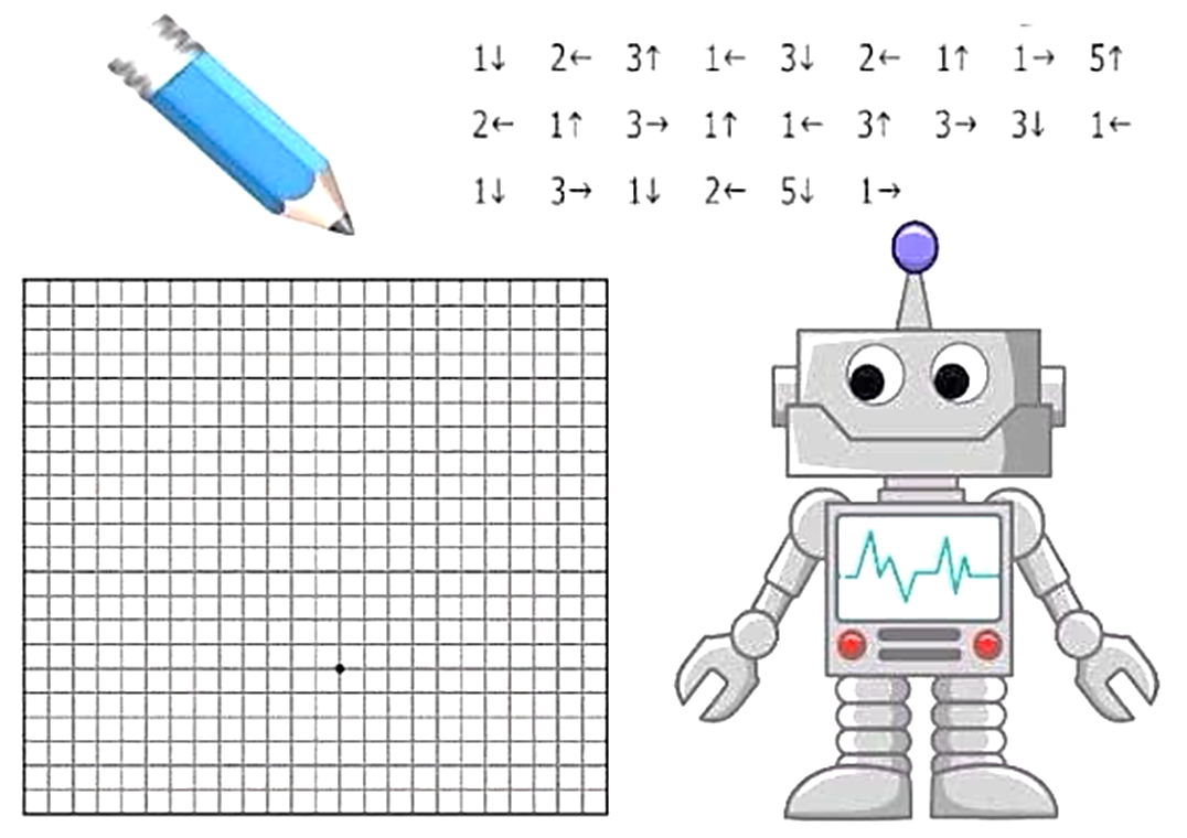 - na základe symbolov ↑ → ↓ ← nakresliť (narysovať) v štvorcovej sieti obrázok, pomocou symbolov ↑ → ↓ ← popísať obrázok v štvorcovej sieti