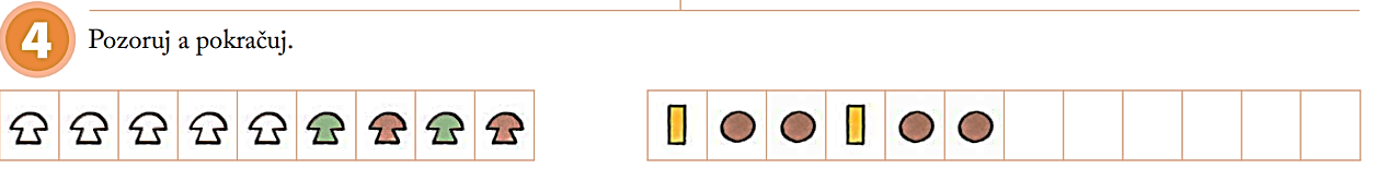 - identifikovať jednoduché pravidlo vytvorenia danej postupnosti, doplniť do postupnosti niekoľko chýbajúcich znakov, symbolov, čísel, obrázkov